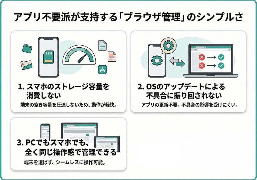 アプリ不要派が支持する「ブラウザ管理」のシンプルさ
