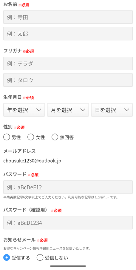 メールアドレス登録の場合