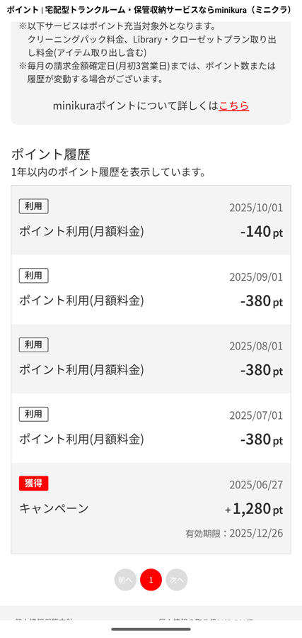 ミニクラのキャンペーンコードを使い約3カ月半分の支払いをポイントで補填できた