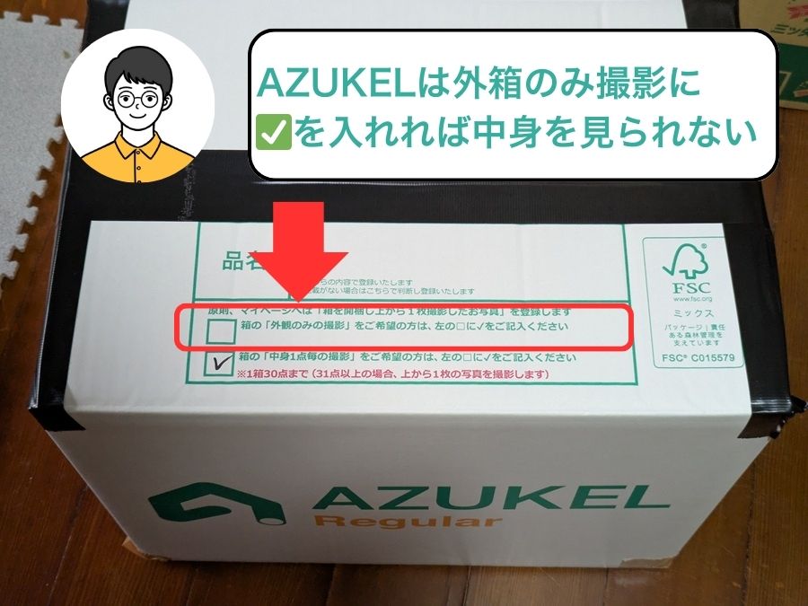 AZUKELは、箱の「外箱のみ撮影」にチェックを入れれば中身を見られることはありません。