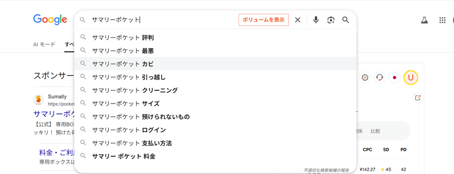 この投稿を見た人が、『サマリーポケット カビ』でGoogle検索したのが発端と予想されます。