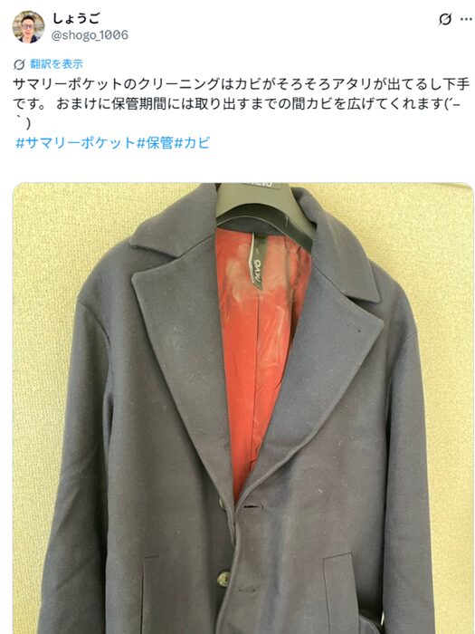 サマリーポケットに衣類を預けてカビが生えたという投稿