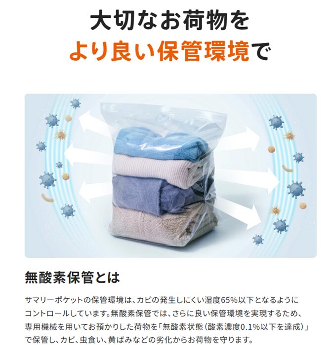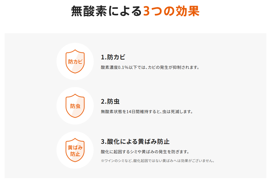 大事な服を保管する場合は、無酸素保管オプションを利用してみましょう。